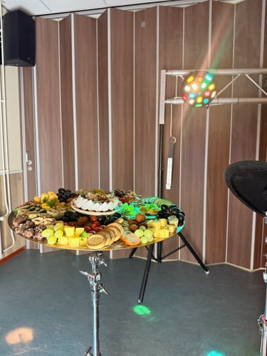 Bij een echte band hoort een goede backstage. Tussen de repetities door serveren we verse hapjes en een koude borrel. Het perfecte moment om de eerste muzikale successen te vieren en de onderlinge band te versterken. Na de finale volgt een uitgebreide borrel om na te genieten van jullie eigen hit.